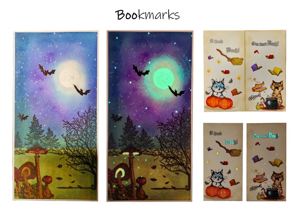 Double sided Boo!kmarks with glow in the dark details.